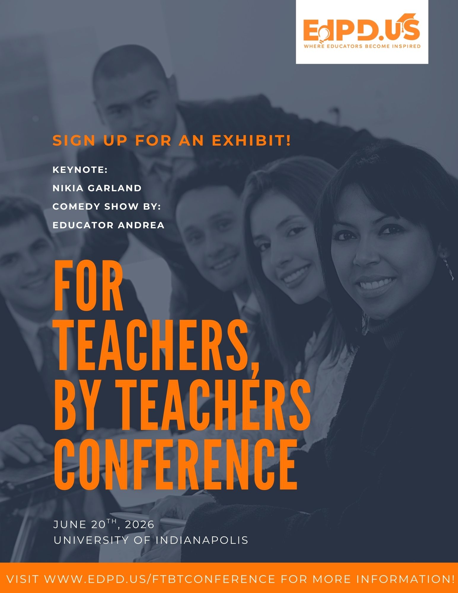 The For Teachers, By Teachers Conference & EdPD.us team is looking to partner with sponsors who would like to be present at our event and connect with educators. We have established a tiered system of sponsorship levels. Each tier offers a range of options designed to align your desired level of support with corresponding opportunities to promote your product, organization, or program. Terms and conditions are included in the registration form. If you are looking to get in front of educators, this is a great opportunity for you. We are anticipating 300-500 teachers to be present on the day of the event. Thank you for supporting our mission; your support is invaluable!