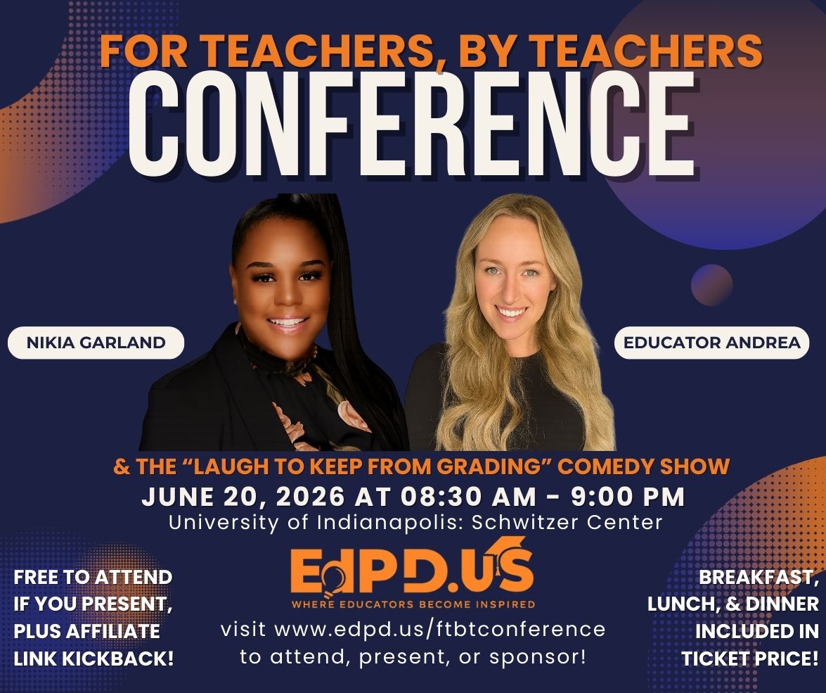 The For Teachers, By Teachers Conference is designed for educators across all K–12 content areas and is centered around the theme “Immediate Impact.” Sessions will focus on practical, ready-to-implement strategies that attendees can apply directly to their classrooms in the upcoming school year. Our keynote speaker is award-winning educator Nikia Garland, and all subsequent sessions will be facilitated by current classroom teachers who understand the real-world challenges and opportunities of today’s educational landscape. Conference registration includes breakfast, lunch, and dinner, along with snacks and coffee available throughout the day. The event will conclude with a dedicated networking session, followed by a comedy performance featuring headliner “Educator Andrea” Forcum.